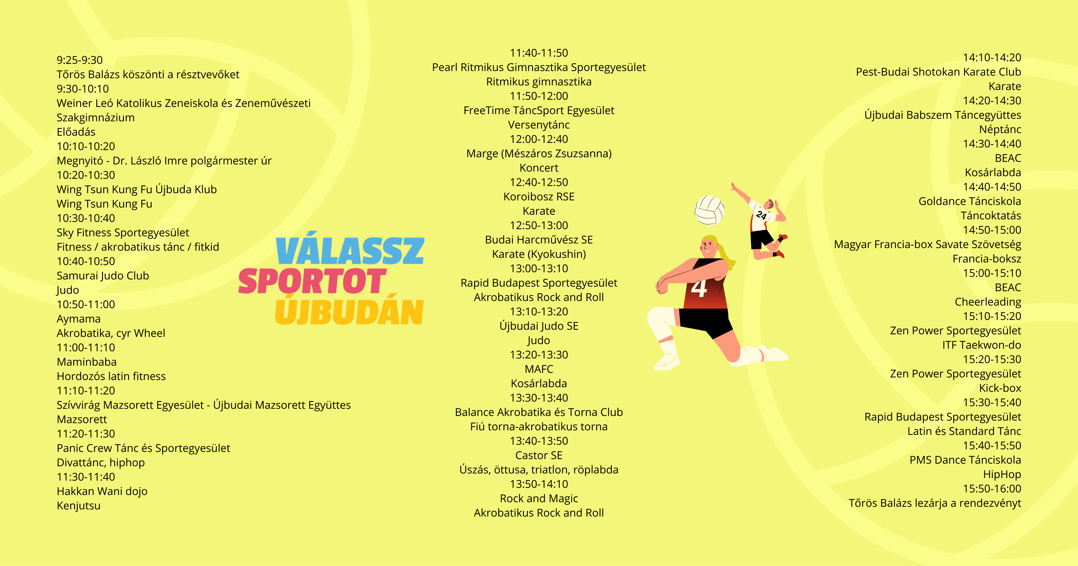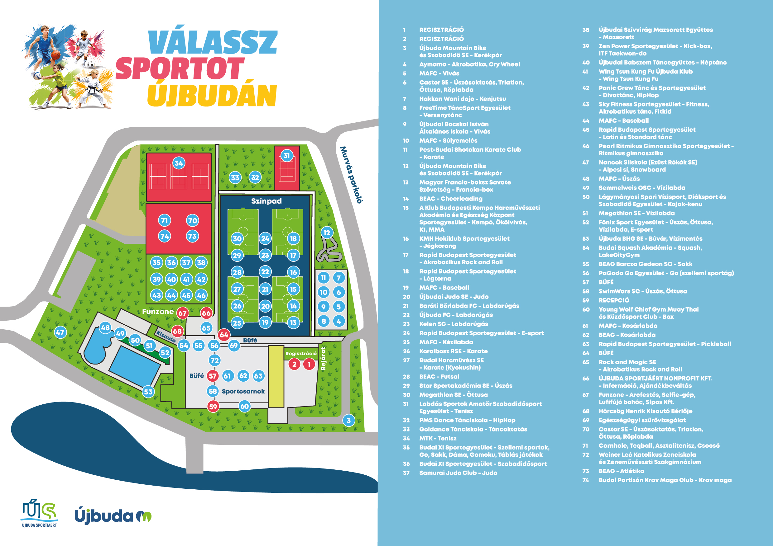 Az alábbiakban a "Válassz Sportot Újbudán! - 2025" részletekre bontott programja olvasható, de megmutatjuk azt is, hogy a különböző egyesületi sátrak, a sportágak bemutatói és a színpadok hol lesznek találhatóak.